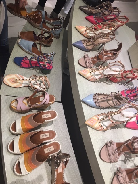On eight, in the shoe emporium, everything that will be on sale is noted with a presale sign. The very large selection of Valentino and Giuseppi Zanotti sale shoes are displayed on tables. The rest of the sale shoes are on a maelstrom of racks. We were surprised to see so many Fendi monster style shoes. We spotted monster mohawk sneakers that are now $840 from $1200, bug stud flats that are $490 from $700 and jacquard espadrilles that are $280 from $400.