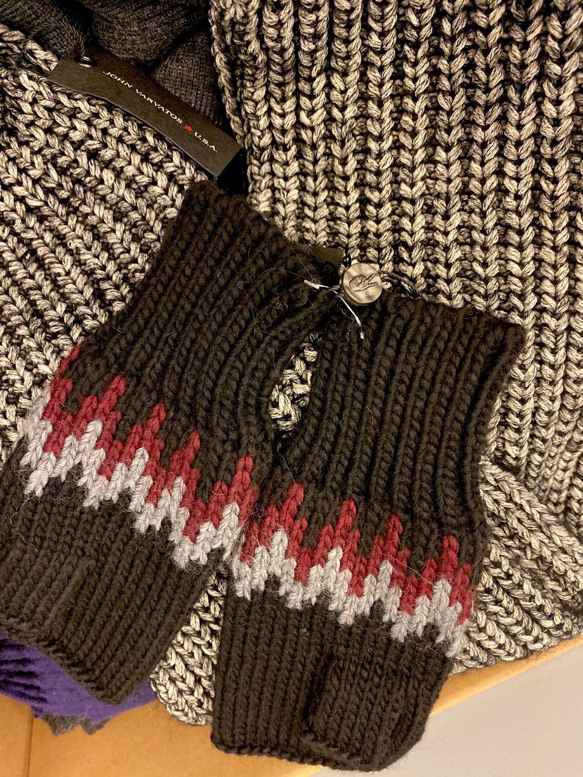 There are also some less expensive gift options. This Acne winter hat is adorable for about $70 from $160 and a Jocelyn feather bolero is $165 from $300. Here it is in black but only a size small remains. These Off-White earrings are $182 from $350, Y-3 sneakers are $180 from $300 and a Lele Sadoughi headband is $67 from $150.