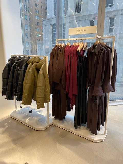 What makes this Nordstrom a little bit different than other stores is that there is also encourages exploration. I was surprised to see Perrin in the designer handbag section and discovered D’estree–a brand I didn’t know! Their bags have the visual intrigue and a price point close to Danse Lente but offers far superior quality. I got to get up close and personal with a great assortment from Nanushka and have a newfound appreciation for the quality and affordable price. (Slide through to see pictures from inside the store.)