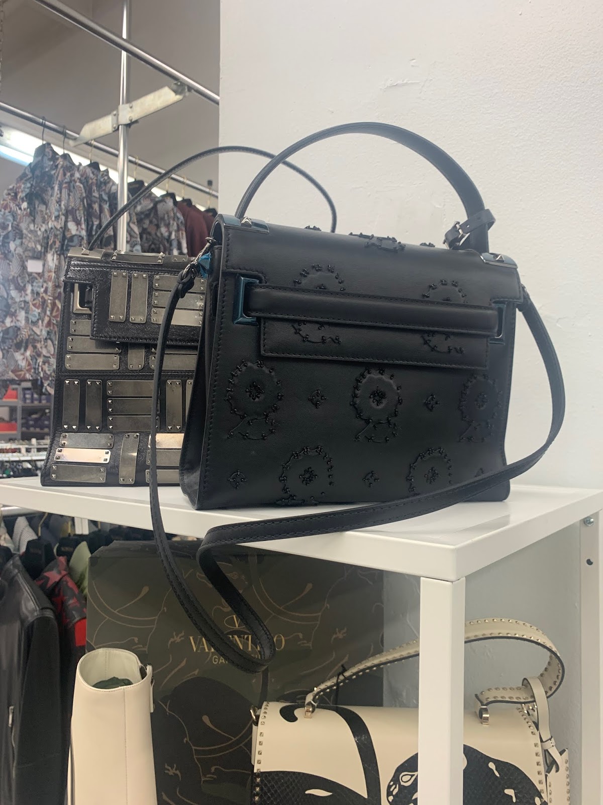 The Rockstud shoes are always one of the most popular attractions at Global Fashion’s sample sales. Yes, there are a lot. There is a variety of options in assorted sizes and they are all reduced 50% off. There is black-on-black, bi-colored and even some tri-colored pumps and flats. There is also a large selection of boots all reduced 70%. Among the bags, the are top-handle Glamlocks and camo totes, which are reduced 70%. A large Glamlock is $1011 from $3375 and a Rockstud wallet is $210 from $695. (You can stalk pictures of some of our favorites over here.)