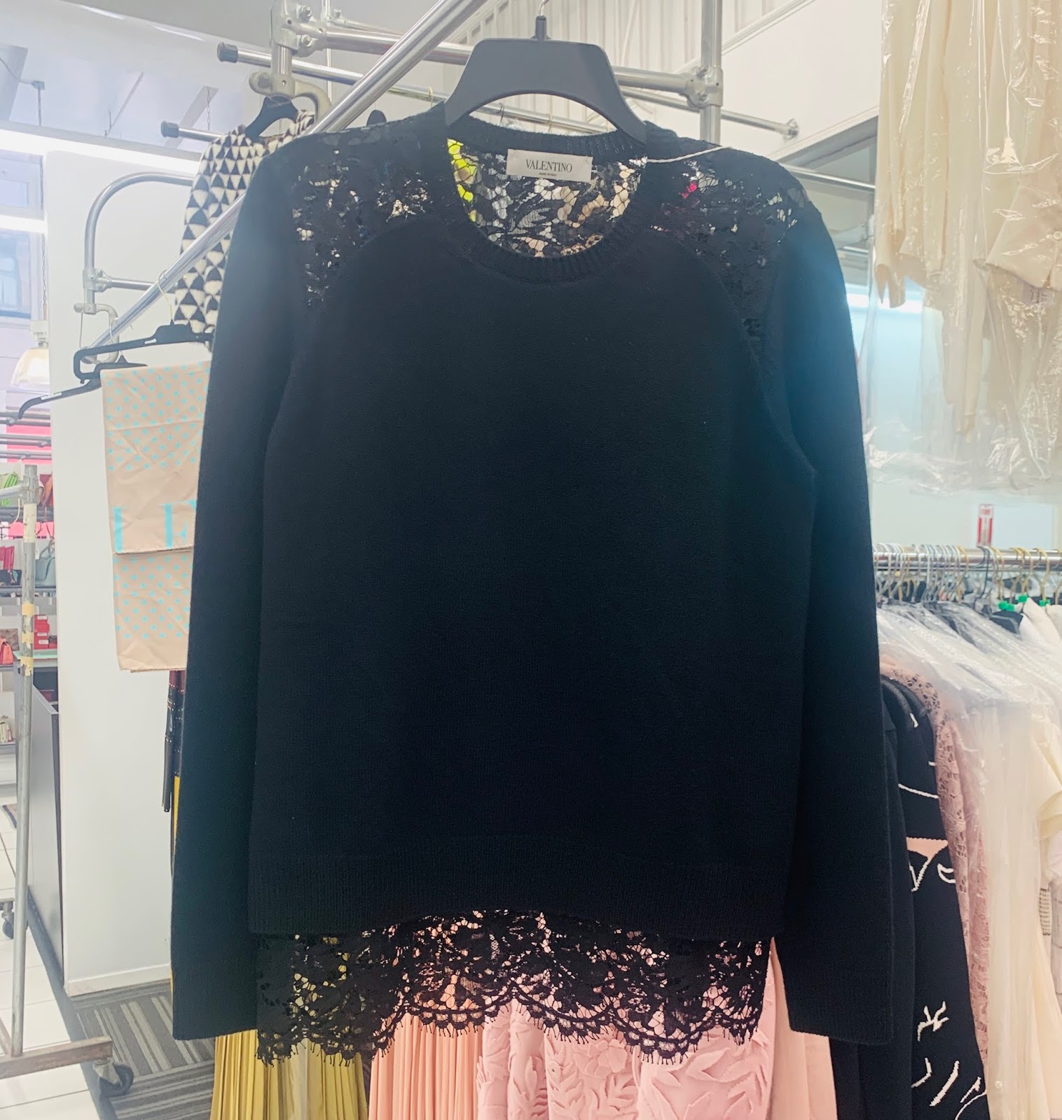 The couture is always what melts our hearts at these sales. We almost fell over when we spotted a one-of-a-kind pink 3-D floral wool jacket that retails for $13,000 but is now $2600. A black wool sweater with lace detailing is a little more wallet friendly at $460 from $2290 and a full lace maxi skirt is about $800 from $3450. (Click for pics.)