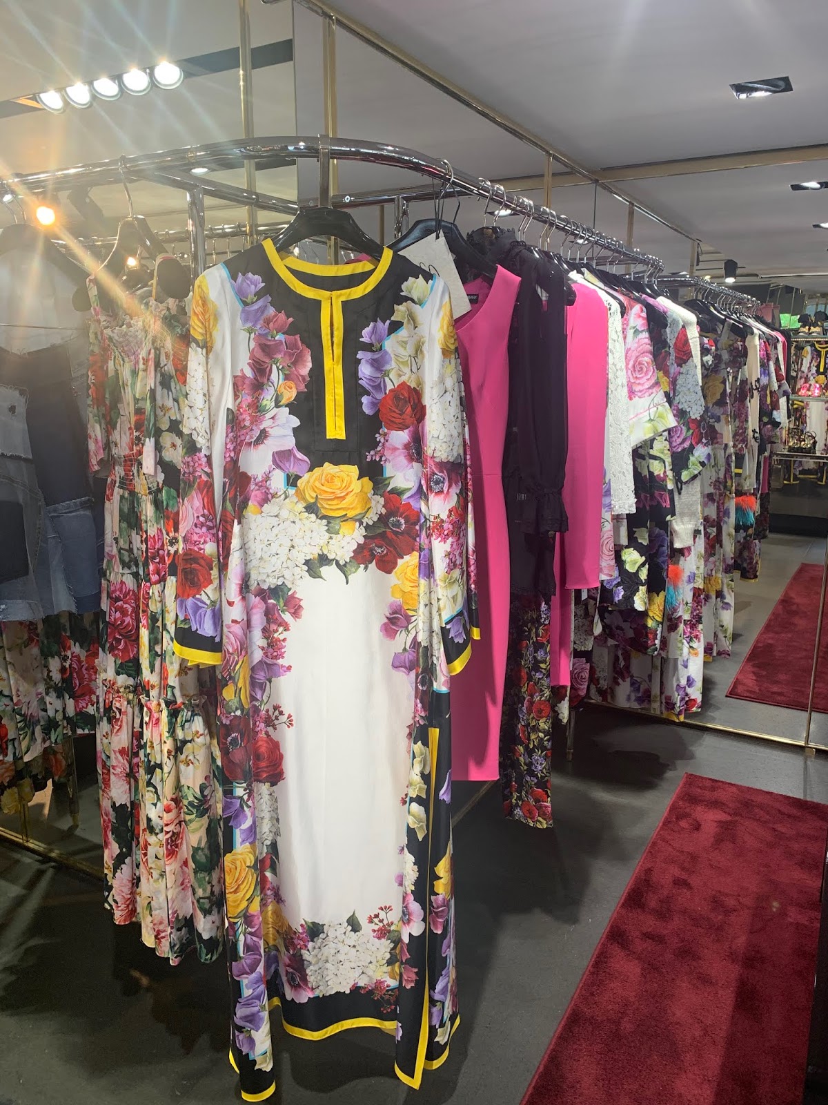 At the last sale, we found prices nicely discounted but not more than an end-of-season retail sale. Print and solid bikini tops and bottoms were $40 each, one-pieces were $75, embellished bikinis were $50 each for tops and bottoms and embellished one-pieces were $90. Sarongs were $50 each. Among the clothing, maxi dresses are plentiful and priced at $115, jumpsuits were $120 and tops were $55. Click over to our review from prior years, where you will find a lot more information, including how to navigate the no-changing room situation.