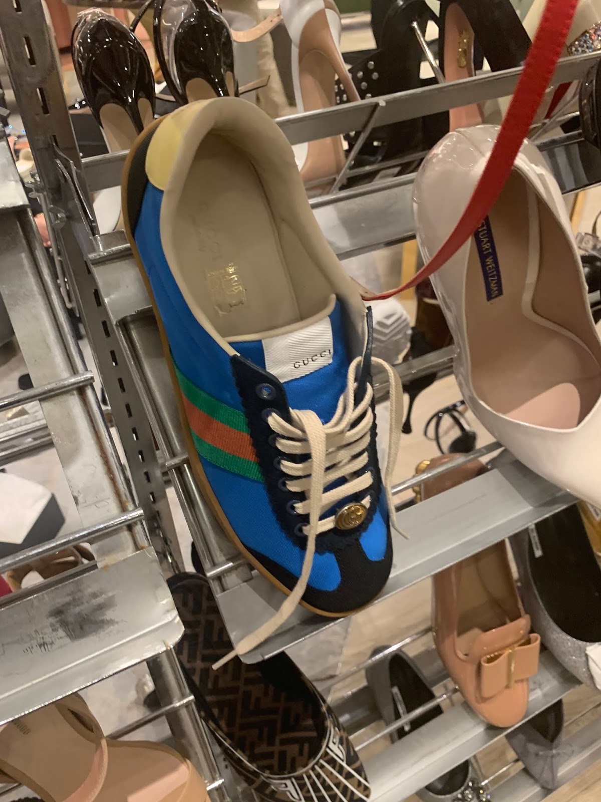 (TAKE NOTE: Bloomingdales just sent out a link to 50% off Gucci shoes. The selection is much better. Here are fur lined Jordaan loafers for $550 from $1100 and Guccy sneakers for $445 from $890. Click over… there’s a lot.)