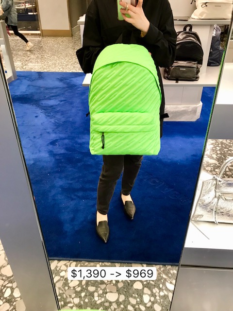 It just keeps getting better. In the back, you will find shoes assorted by size. We immediately fell in love with the most classic style Rockstud pointed toe pumps. They are available in an assortment of colors and there are plenty of size options. The final price is just $255 from $845. It almost feels like one pair is not enough. Basic black patent pumps with a 4″ heel are $330 from $1095 and sneakers are $210 from nearly $700. (That’s less than a pair of Yeezys.) Click over to the jump to see lots of pictures.