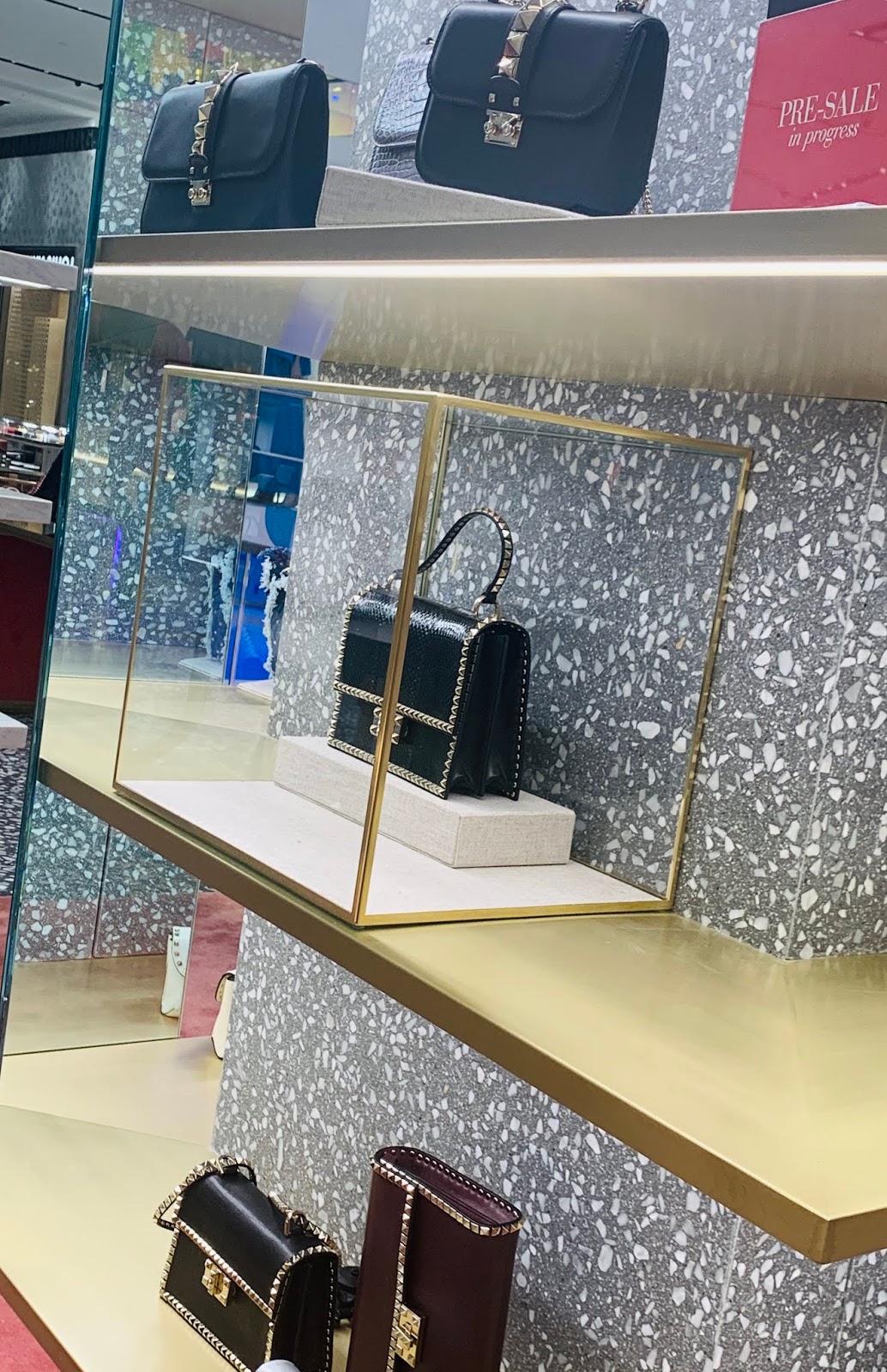 The main floor of handbags is a little hard to navigate. Many of the spaces are leased and not cooperating traditionally. For now, we suggest you focus your attention on participating handbag brands, which include Valentino, Balenciaga, Chloe, and Prada. You can click here to see pictures of what’s included in the markdown. All Valentino bags are 40% off, Chloe is 40% off, Balenciaga is priced 30% to 50% off and Prada is 40% off.