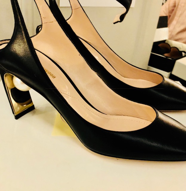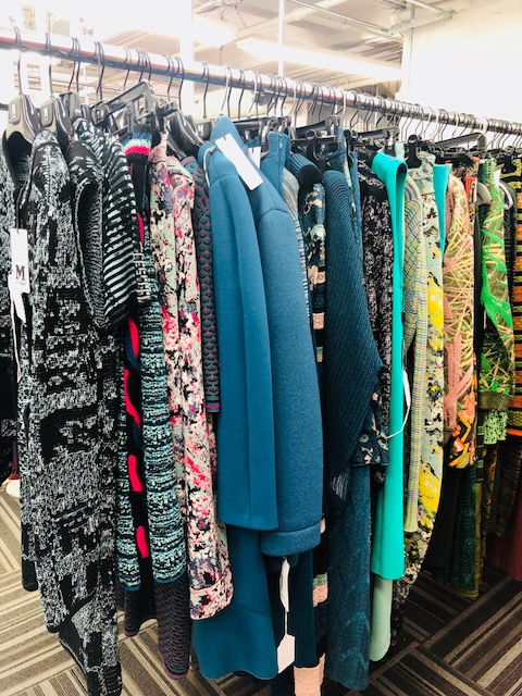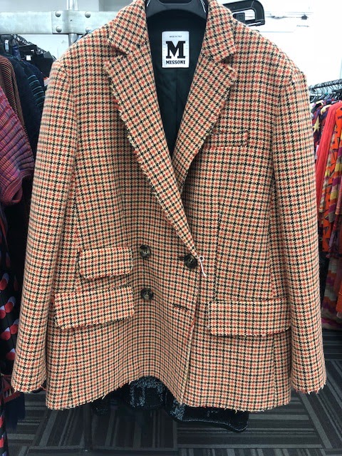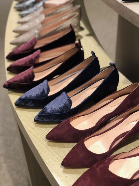 Our next stop was express to shoes. The markdown ranges from 25% to 40% off. We were most surprised to find a full range of beautiful Manolo Blahnik Hangisi shoes on the 40% off markdown table. Here are the tweed pumps we saw reduced to $730 from $1045 The online selection is reduced even more. This satin Hangis d’Orsay is $386 from nearly $1000. Other standouts were Off-White riding boots for $1100 from $1500, Saint Laurent pointy toe pumps, and Jimmy Choo sneakers for $486 from $700. Jump over to see pictures of what else we found on the shoe floor.