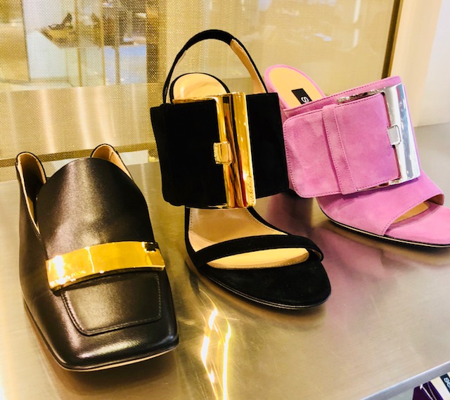 Among the reduced shoes is an assortment of Prada. These Jacquard mules are $533 from $870, flats with the new sports strap are $474 from $790, and espadrilles are $342 from $570. Bergdorfs has the best selection of No21 shoes. A Gingham print mule is $434 from $620 and a palm tree print flat is $437 from $625.