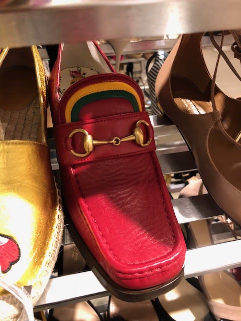 If you’re looking for a sale selection of Gucci bags, you’re going to have to be a bit more enterprising and identify retailers who sell Gucci but aren’t Gucci managed. The Gucci store in Boca is one good source or you can just head online. Right now, there are about two dozen Gucci bag styles posted in the sale section of the Saks website. Over this way, there is the Gucci Dionysus embroidered GG bag with the angry cat for $2786 from $3980, this red, white and blue top handle Dionysus is $2240 from $3200, a Willow Hill chain bag is about $2000 from $2980 and a laptop case is $400 from $590. Here is a link to all the sale shoes at Saks and there is still full size runs available. We suggest you act fast with this Saks sale because once news gets out stock will go fast. (Ah-hem).