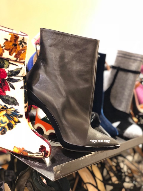 The shoe section has some great finds too. Over here, we found Balenciaga logo short boots and almost every size is still available. They are reduced to $425 from $945. Fendi slides with faces are $315 from $700, Jimmy Choo Moto boots are $527 from $1050 and Saint Laurent Niki ankle boots are $450 from $900.