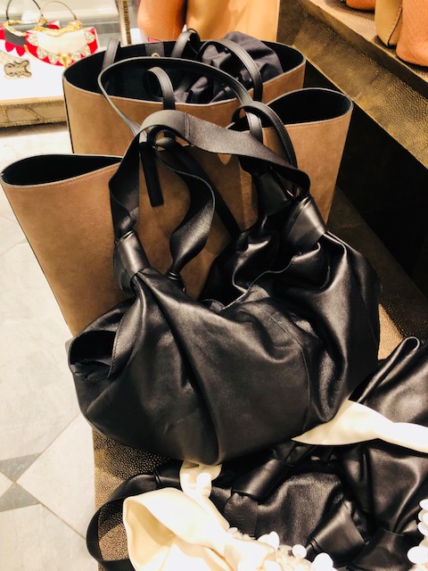 Starting off, on the main floor, we found a few tables of bags. Bright pink and blue Balenciaga City bags and totes are reduced 50%. The most attractive sale assortment is the Valentino bags, which can be found at the center of the main store. A gorgeous, light blue, Rockstud Spike bag that’s now $1600 from $3195. We also found a black Demilune bag that’s $1300 from $1200. A Dries top handle bag is about $500 from $950 and mini Givenchy Horizon bags in blue and purple are about $1000 from $2000. (You can see pictures of more bags over this way.)