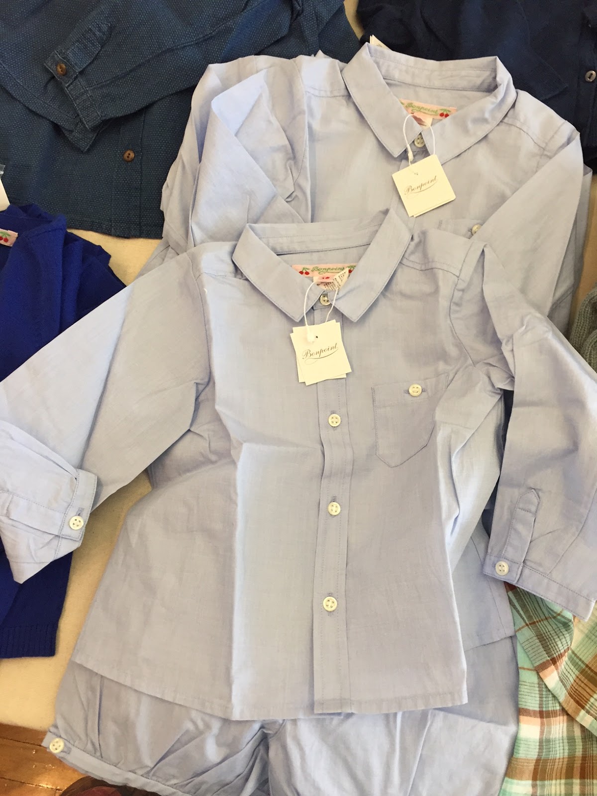 Recently, we’ve noticed that Bonpoint is mixing in a few trends with their classics. For example there were a lot of chambray shirts, for both boys any girls. There are a lot of trendy cute jackets for the Spring (or Fall) and printed tees. Click here to see some pictures from inside.