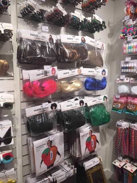 Shoppers will be tantalized by the dress-up section were colorful wigs are $5 and funky party glasses are $4. There is a wall of brightly colored greeting cards that are 2-for-$1, gift bags ($1) and wrapping paper. In one of the kitchen set-ups there are brightly colored silicone colanders for $2, cheeky cheese graters are $2, and an apple shape scrubbing sponge is also $2. Stoneware salad plates, coffee mugs and bowls are all $2 each. There are about six different themes and prints. It’s going to be hard to have a party and not buy real serving ware to match the theme.