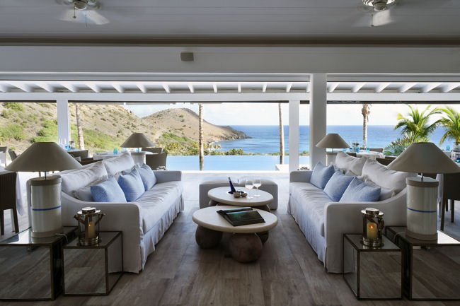 The renovations were overseen by London-based interior designer, Lady Bee Osborn. Le Toiny’s original French-inspired décor has been transformed into a clean ocean front aesthetic, which includes a muted palette of neutral tones, petrified wood, mother-of-pearl and sun-bleached teak. The design is accented with pops of Caribbean blue.