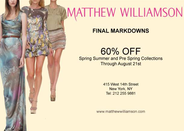 While most of the Madison Avenue markdowns have come and gone, the Giorgio Armani boutique is having their collection sale through the end of August. Go straight to the elevator and up to the fourth floor where all the merchandise including accessories and ready-to-wear are discounted 40% off retail.