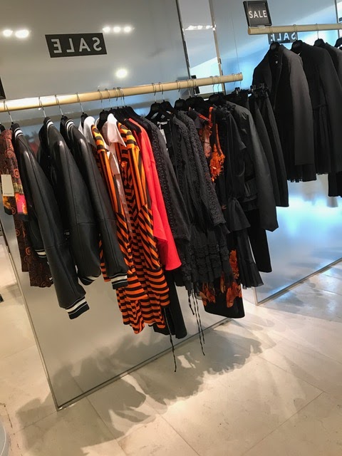 Downstairs, in the Prada section, we found lots of great pieces. That pink lips skirt, we have been coveting all season, is now reduced 60%,along with this printed silk dress. You can see pictures of the Prada sale selection right here. The Off-White selection is disappearing fast. Online you can still find a size range of the stripped jeans and roses styles.