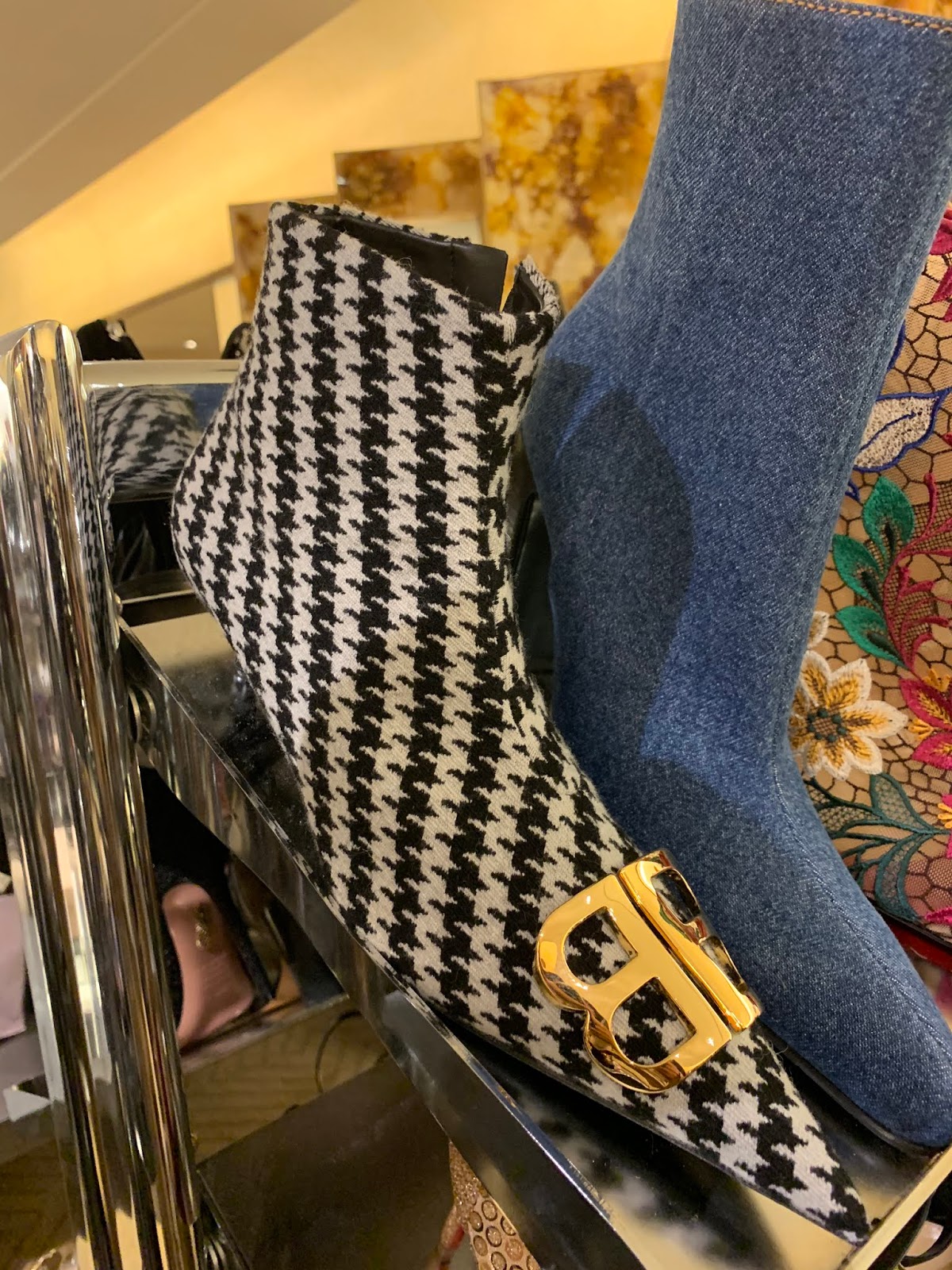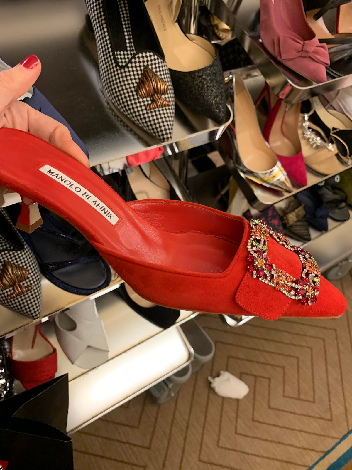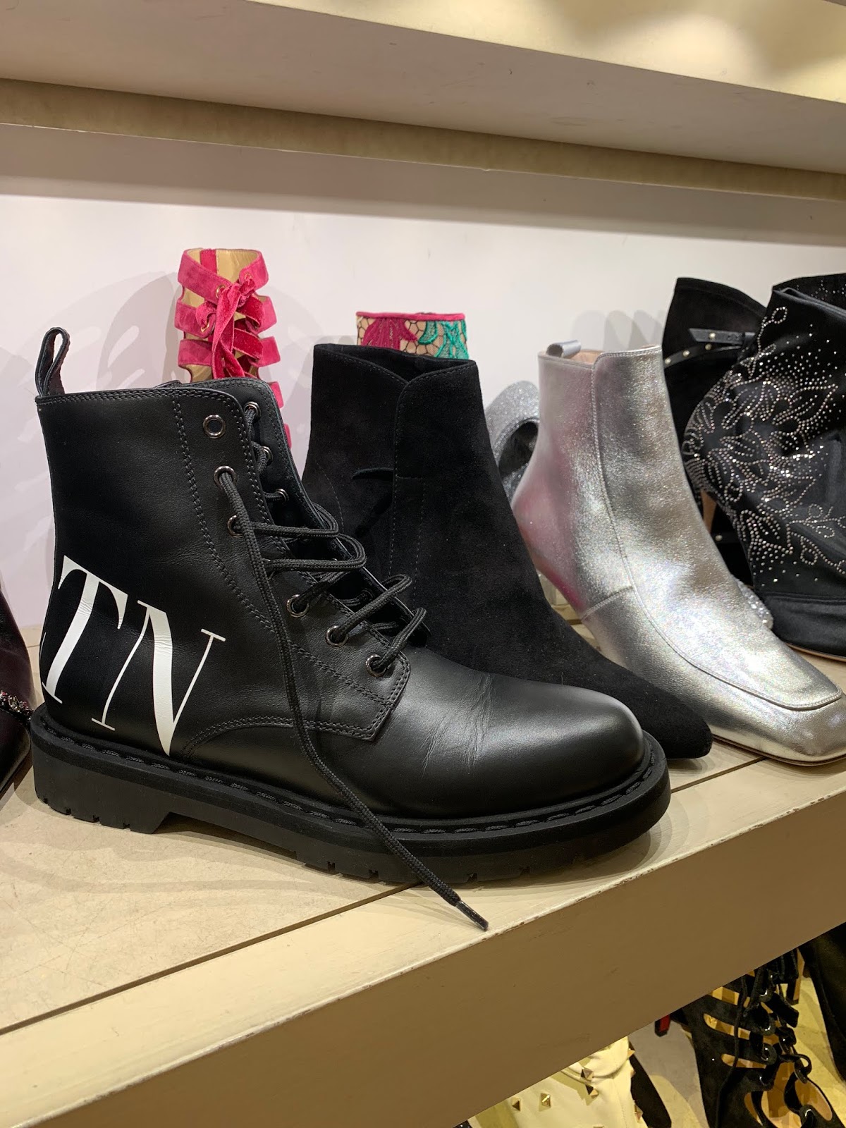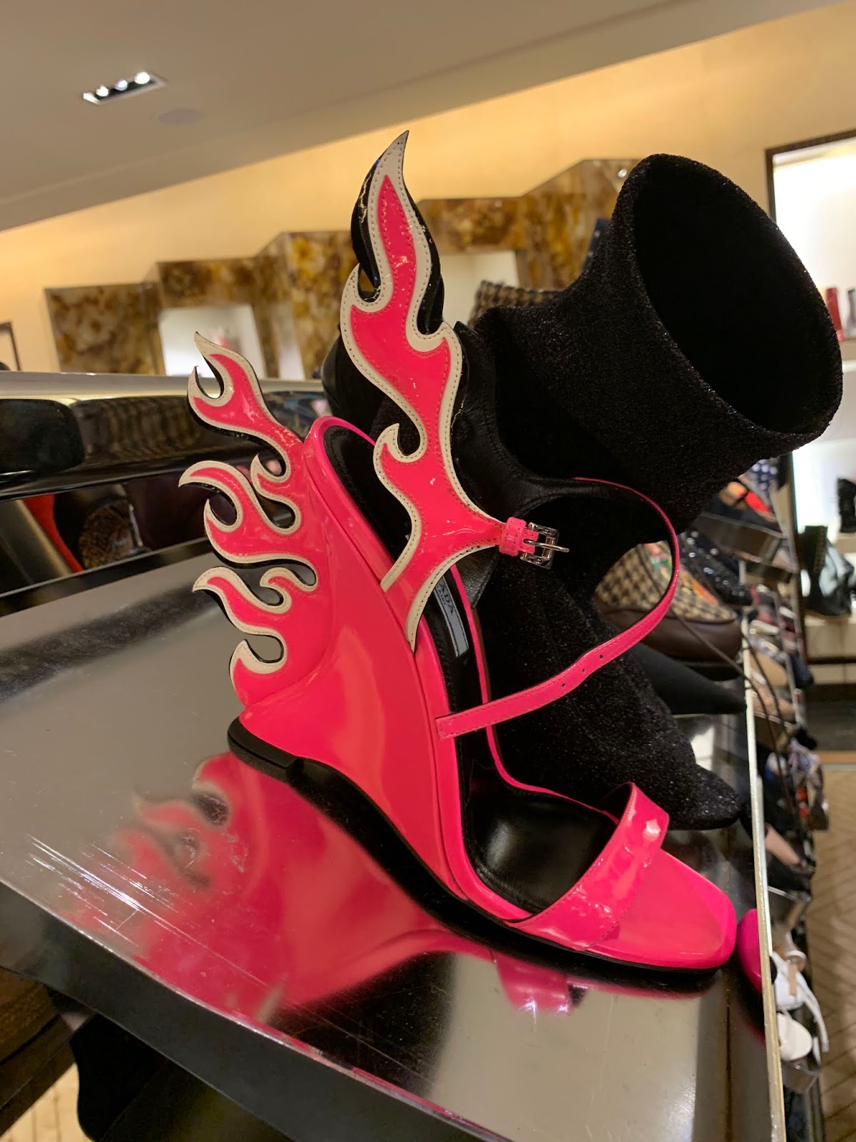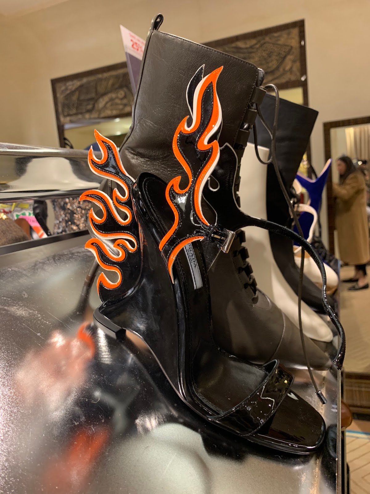 The promotional discount brings the total savings up to 70% off on clothing and nearly 65% off on shoes and bags. The online sale selection of handbags is much better than we would have imagined. There is still this classic Valentino Rockstud velvet bag that will come to about $1000 from $2500, and a mini Chloe Drew bag is $800 from nearly $2000 and an Off-White box bag is about $550 from $1475. I think that $500 for this Prada tote, totally counts as a big score. At the store, you will still find some more Balenciaga, Proenza and Christian Louboutin styles left on the tables near the North Fifth Avenue entrance. (You can see pictures from inside the store over here.)