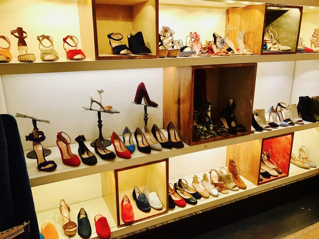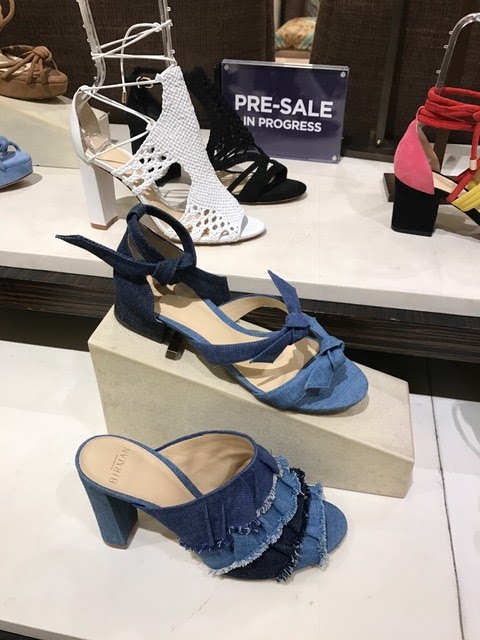 Upstairs the shoe presale selection is enormous. There are dozens of Prada styles, rows and rows of Aquazzura.(All the sale shoes are already available online too.) We particularly like these Fendi sandals with studs that are $630 from $900, ruffle suede sandals from Alexandre Birman that are $437 from $625 and Gianvitto Rossi’s block heels are starting to prove to be timeless.