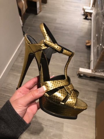 Some designer merchandise is already discounted online. Discounts range from 25% to 33% off. Some of the standouts include this Chloe shirtdress that’s reduced to $1762 from $2350 and a Versace print belted dress for $1500 from $2000. Gianvitto Rossi shearling boots are $1120 from $1500 and Balenciaga pointed toe boots are $1100 from $1475.