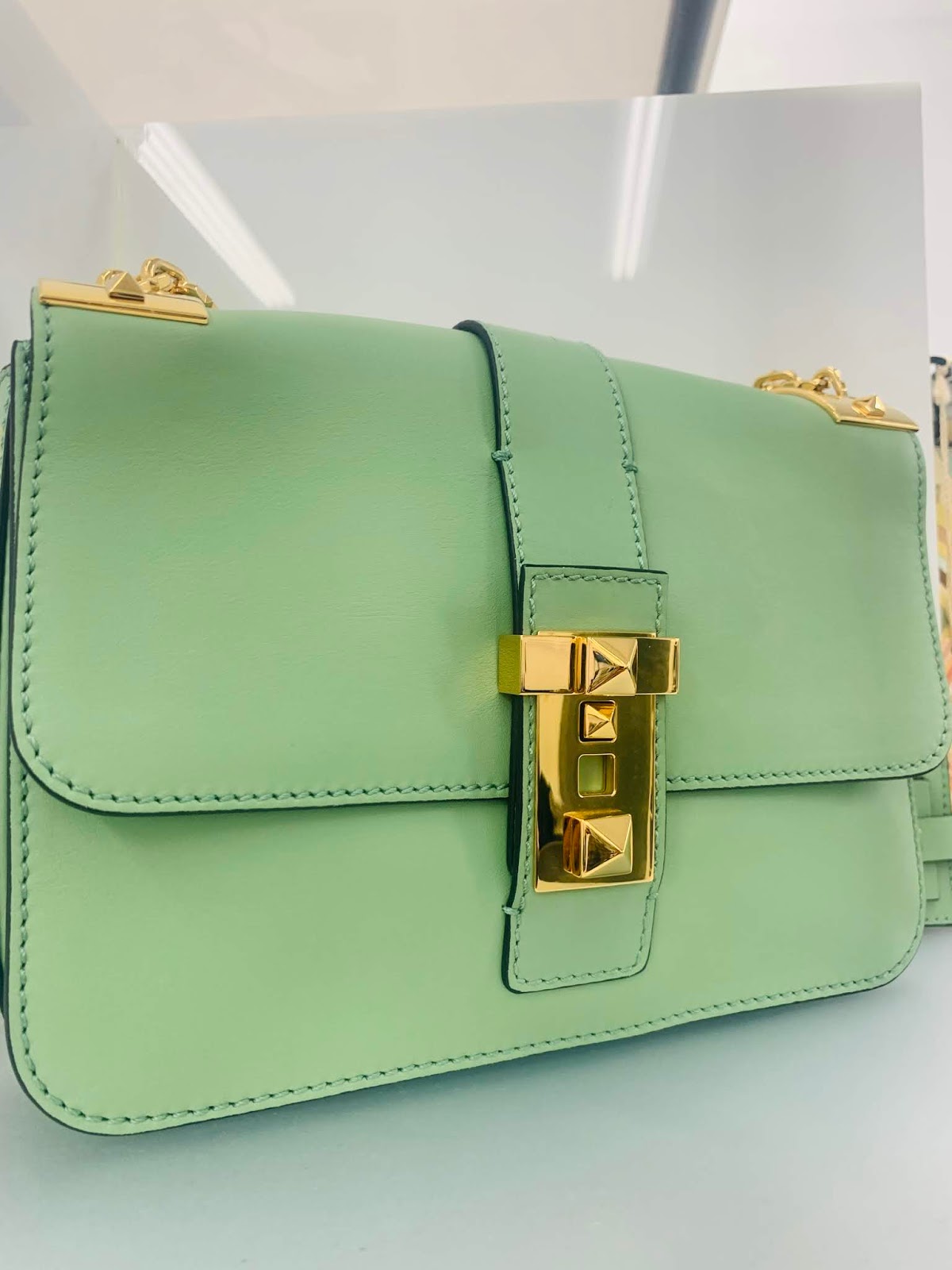 Over towards the checkout counter, you’ll see an assortment of jewelry and belts. Most are priced at about 80% off retail. These flower drop earrings in assorted colors are $65 from $350 and there are bins of great belts all priced at $40. Classic ODLR floral “Tro” bags are $537 from $1790. (We have pictures and prices over here.)