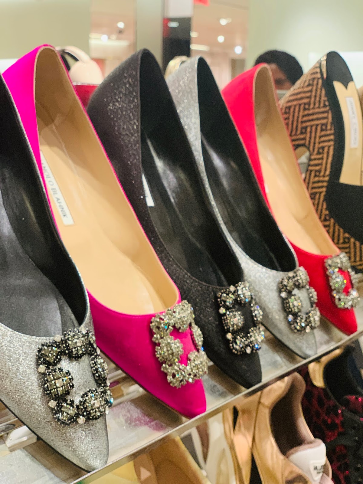The Saks shoe selection also consists of a great assortment of Manolo Hangisi heels and flats. The sale racks are also filled with an assortment of Fendi, Givenchy and Jimmy Choo. We have tons of pictures in the jump.