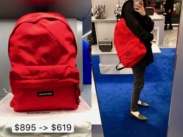 The main floor of handbags is a little hard to navigate. Many of the spaces are leased and not cooperating traditionally. For now, we suggest you focus your attention on participating handbag brands, which include Valentino, Balenciaga, Chloe, and Prada. You can click here to see pictures of what’s included in the markdown. All Valentino bags are 40% off, Chloe is 40% off, Balenciaga is priced 30% to 50% off and Prada is 40% off.