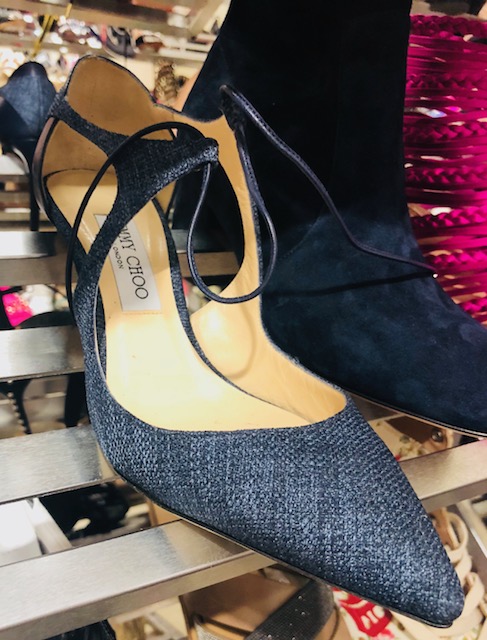 Upstairs in the shoe department, a lot of the best style shoes are selling out. We saw these Fendi pearl flats in a few sizes reduced to $472 from $900. Here they are in a heel or a sock-boot. These Gucci espadrilles are under $280 from $630. These Jimmy Choo cork wedge sandals are a steal for $200 from $450 and Manolo Hangisi Berk-style sandals are $500 from $1100. You can see pictures from inside the Saks shoe sale over here but we think that the online selection and prices might even be better than what we found at the store.