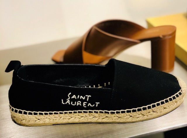 Among the reduced shoes is an assortment of Prada. These Jacquard mules are $533 from $870, flats with the new sports strap are $474 from $790, and espadrilles are $342 from $570. Bergdorfs has the best selection of No21 shoes. A Gingham print mule is $434 from $620 and a palm tree print flat is $437 from $625.
