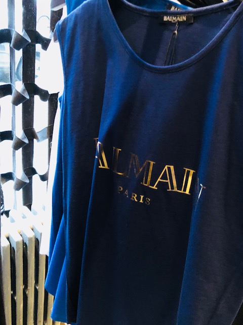 The best part is that there are plenty of racks that are discounted 50% off. (You can click here to see what we spied on sale and other great fashion, not on sale.) We found a classic Balmain dress reduced to $2125 from $4250, a Balmain puffer is about $2900 from $5850 and the classic tank with gold button shoulders is $140 from $280.