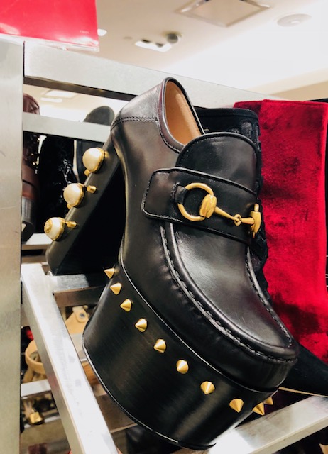 Upstairs, in the shoe department, there are still plenty of racks of sale shoes. Most shoe styles are 60% off and there aren’t any additional promotions. On the bright side, the Vetements x Manolo collaboration has hit the ‘racks.’ We found Vetements x Manolo satin ankle boots that are now $800 from nearly $2000 and stain pumps with an ankle strap are $710 from $1775. Other interesting finds are basic Chanel pumps that were priced at $300 from $750, Roger Vivier espadrilles are $290 from $725, Gucci flatforms $575 from $1150, Prada embellished mules are $396 from $990 and Miu Miu fur slides are $380 from $950. Pictures and prices are right this way.