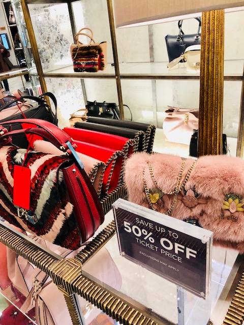The discounts on bags and shoes are holding steady at 60% off but there really isn’t a great selection left. (The assortment at Bergdorfs is better but the discount isn’t as good.) The best assortment are the Chanel shoes, that are now reduced to 50% off. (You can click here to see pictures.) Among the more discounted shoes, we found Alchimia di Ballin high boots for $519 from $1300, Altuzarra print pumps are $339 from $850 and loafers from the Row are $319 from $800.