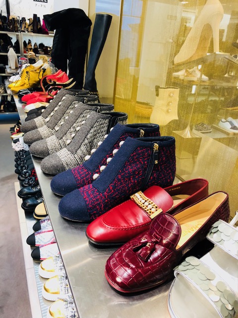 The shoe section has some great finds too. Over here, we found Balenciaga logo short boots and almost every size is still available. They are reduced to $425 from $945. Fendi slides with faces are $315 from $700, Jimmy Choo Moto boots are $527 from $1050 and Saint Laurent Niki ankle boots are $450 from $900.