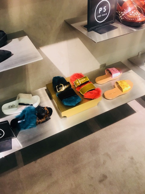 The best selection is the shoes, which are priced as marked at about 85% off. Most shoes are from last winter’s collection. We spotted Karlito Fendi sneakers for $180 from $1550, there were lots of ruffled mules in various colors priced at $120 and ankle boots were $180 from $1300. (You can click here to see pictures.)