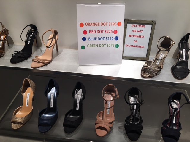 A few pointers for Manolo’s final markdown: Shoppers shouldn’t hoard display shoes, you should be loyal to one sales person (they work on commission) and try to be in and out quickly because there is a one-out-one-in policy when the store is crowded.