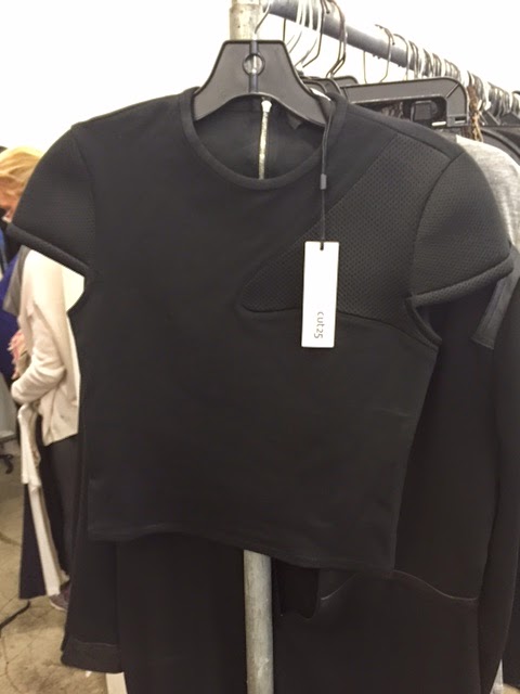 From the Cut25 open stock racks we found a blouse with beaded fringe on the front that is $125, a neoprene crop top is $65 from $225 and an iconic red dress with leather patches and zippers is $125 from $790. There are also lots of tops and casual tees. Pictures of all the aforementioned items can be found right here.