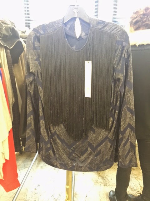 From the Cut25 open stock racks we found a blouse with beaded fringe on the front that is $125, a neoprene crop top is $65 from $225 and an iconic red dress with leather patches and zippers is $125 from $790. There are also lots of tops and casual tees. Pictures of all the aforementioned items can be found right here.