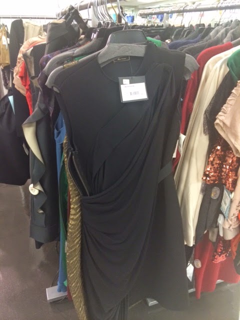 The most popular dresses are the Herve Leger dresses, which range  from $87 to $500. The red $87 variety has a neckline so plunging that it should come with a fake boob option and another blue ombre variety for $105 has an off-the-shoulder neckline that was stretched out on all of them. Other Herve options include a black classic with a racer back for $403, a blueberry stripy style for $196 and an aqua style with a deep scalloped plunging neckline for $225.