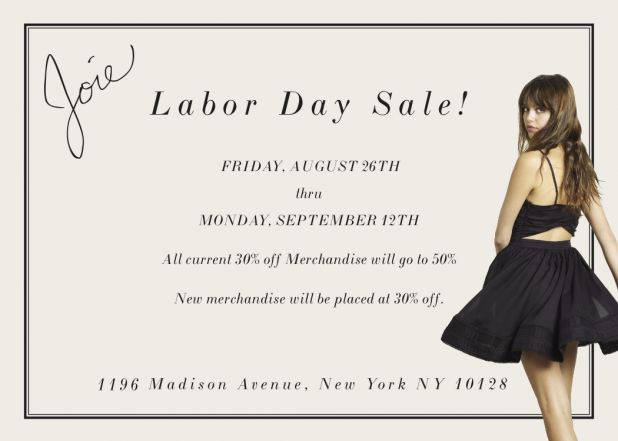 We have the perfect excuse for you to take a trip up to 88th, if you haven’t already done so. Joie is hosting a Labor Day sale where they are taking a second markdown on already reduced merchandise. Items that were 30% are not 50%. New merchandise is being discount to 30% off too.