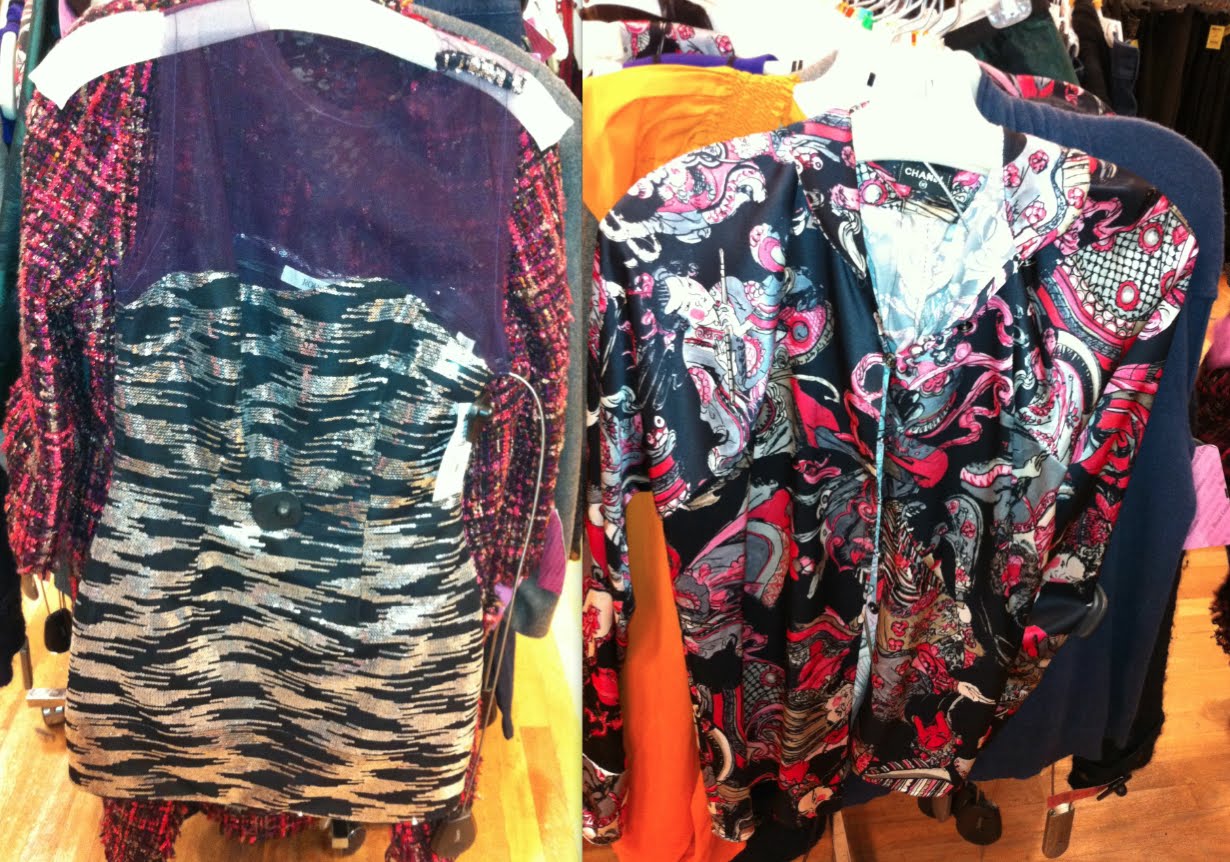We were not disappointed. We found oriental theme print Chanel blouses for $430 from a suggested retail price of $1790, a Givenchy wool jacket for $580 from $2450, a Michael Kors full length skirt fit for a ball for $1200 from $6500 and a Rodarte sequined cocktail dress with navy illusion for $600 from $2530. The real show stopper, however, is a tweed coat that we are sure is Chanel. There is no tag and the buttons were removed but the lining and the tailoring are a dead giveaway. The price is $870 from a suggested retail of $3600.