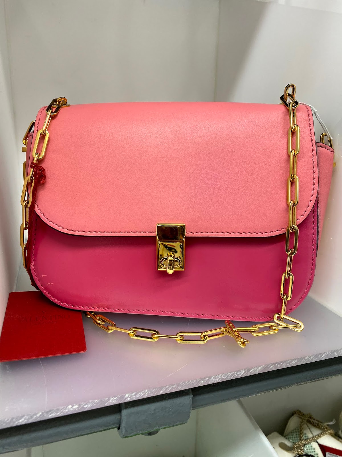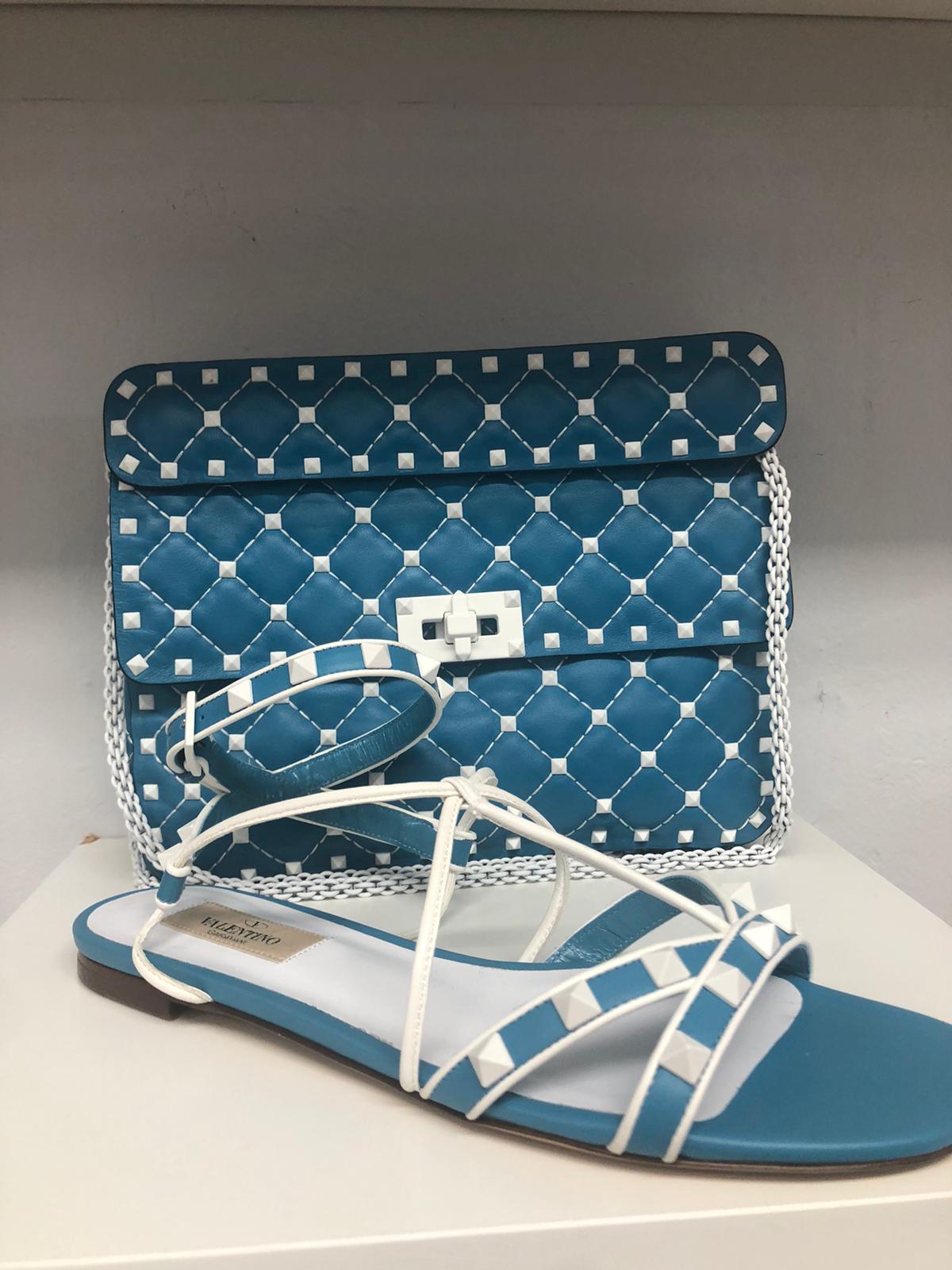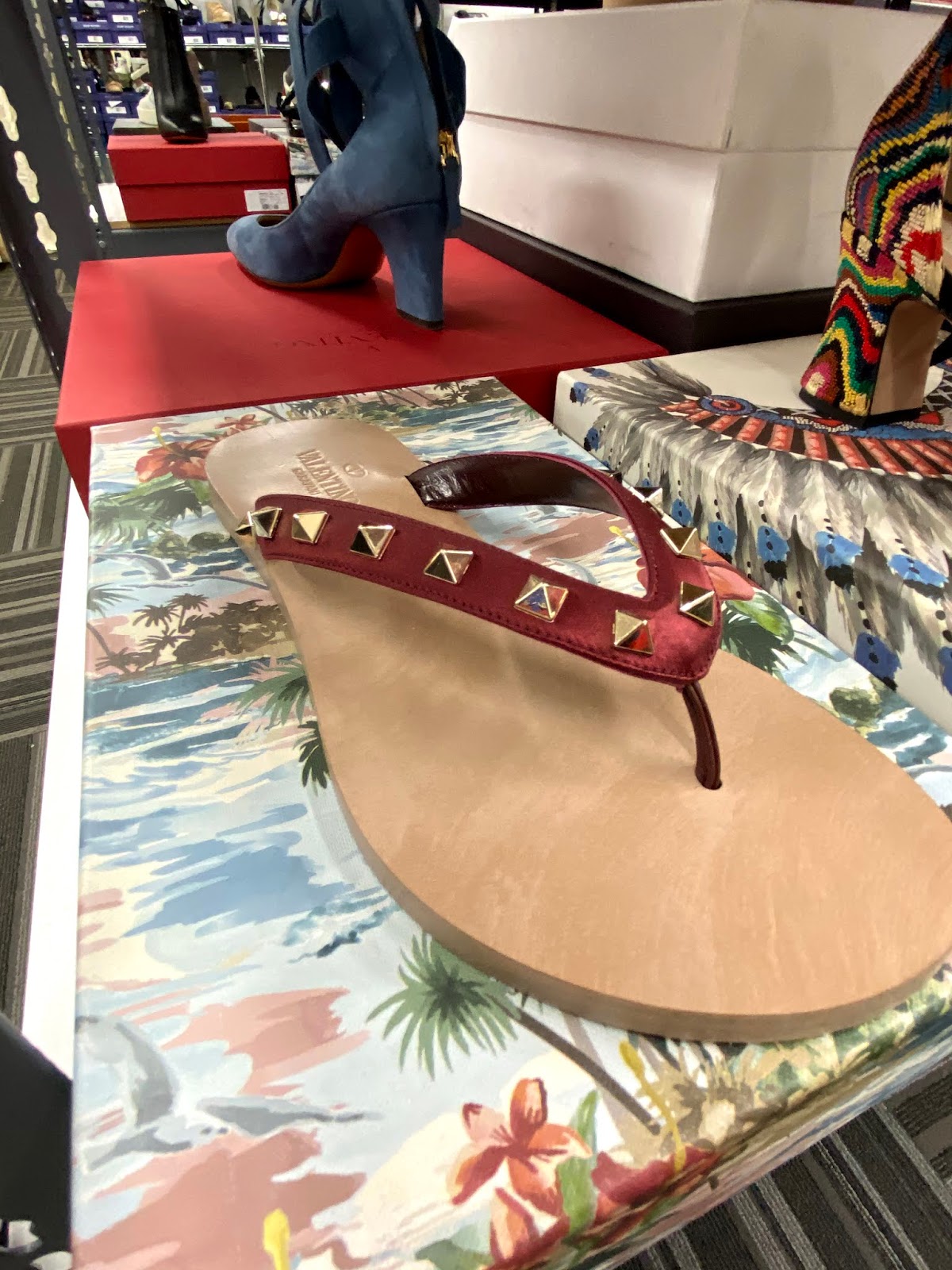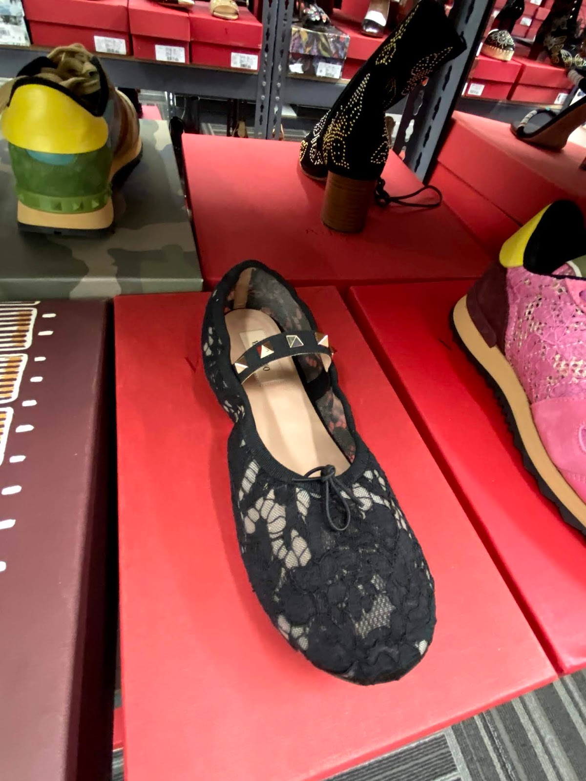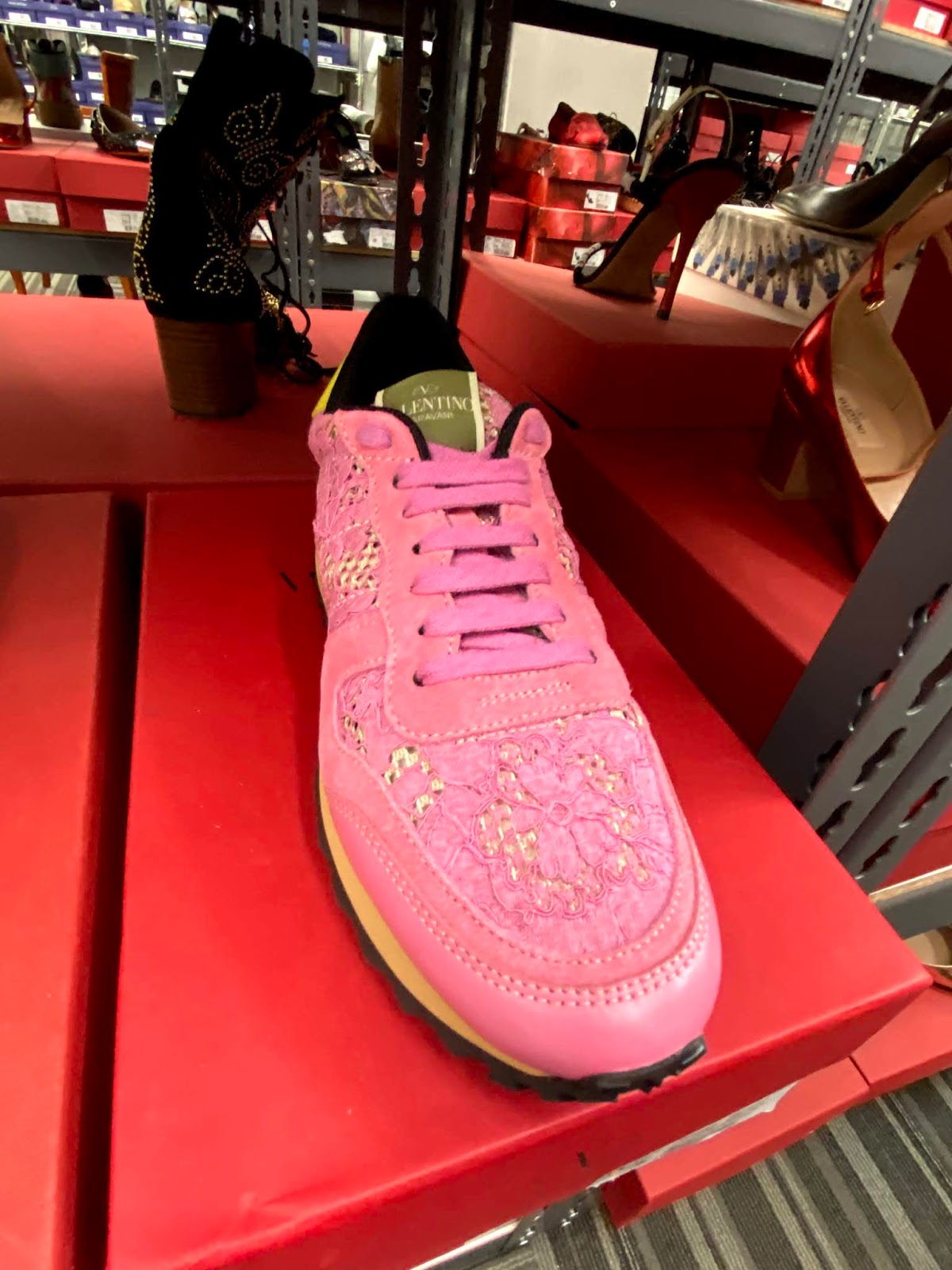 Some standouts include several pastel rainbow nylon Rockstud totes that are $875 from $1945 and coordinating Rockstud shoes are $537 from $1195. Thong sandals with studs are $335 from $795. An understated handbag with a chain shoulder strap is $1032 from $2295. There are also lots of designer sneaker options for both guys and gals. (You can click here to see lots of pictures of what we found.)