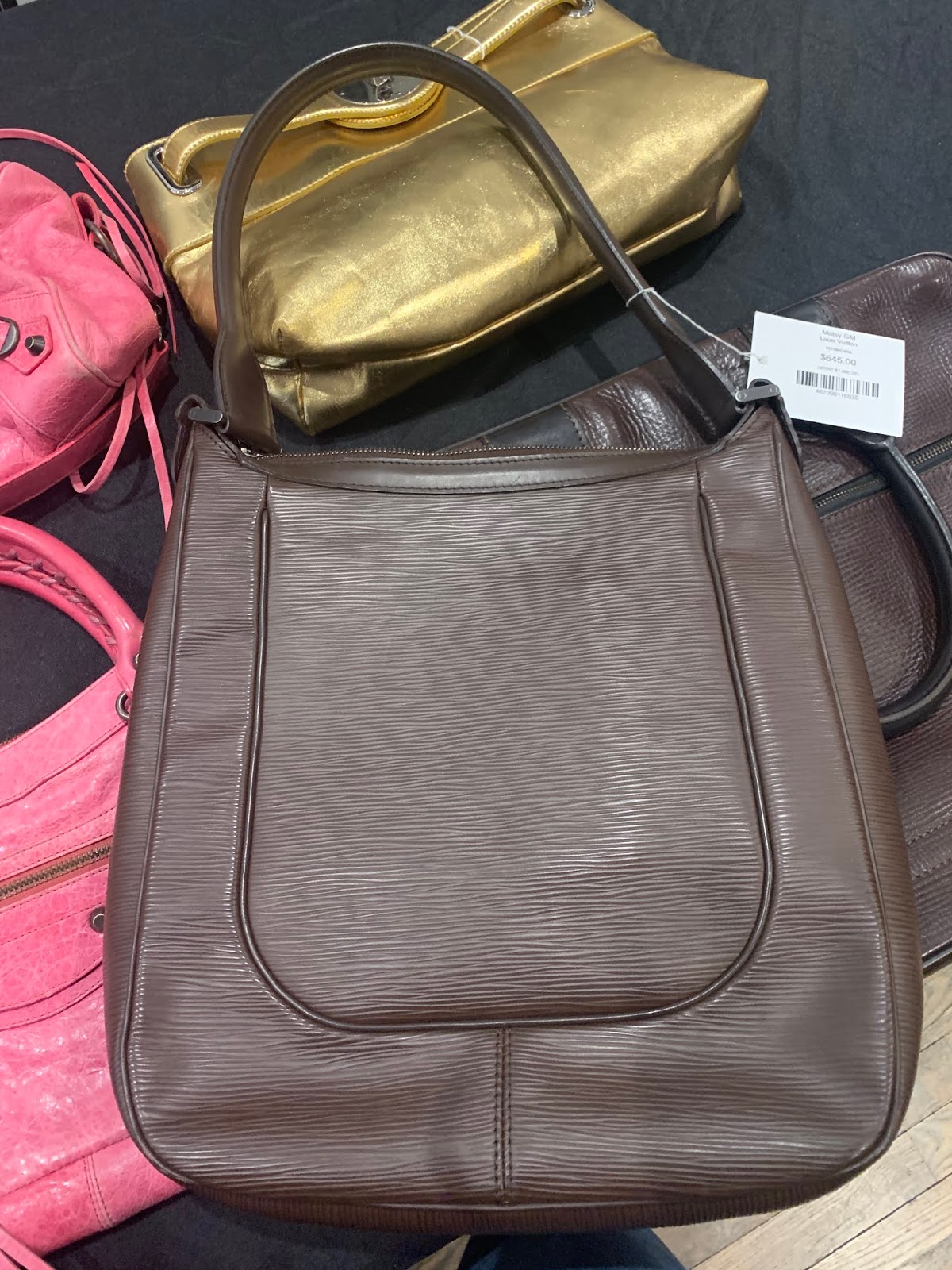 So I went to inspect. Inside, bags are arranged by brand and color. It’s only the second day of the sale and there was already a price reduction. Currently, all Louis Vuitton is 60% off the ticketed price and all other brands are 50% off. Most of the ticketed prices were on the high-side of the pre-owned mark but the additional discounts made greatly increased the purchasing possibilities. It seems as if current prices are about 10% to 20% below the average online price.