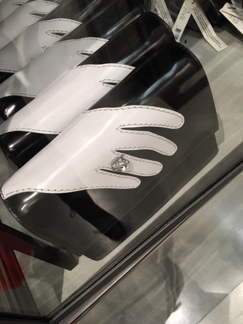 The sample sale also includes a selection of evening bags and clutches that range from fully embellished box bags to more quirky shapes and styles. A bag with a hand silhouette and flashy ‘diamond’ is discounted to about $140 from $400 and a fan bag is $70 from $200.