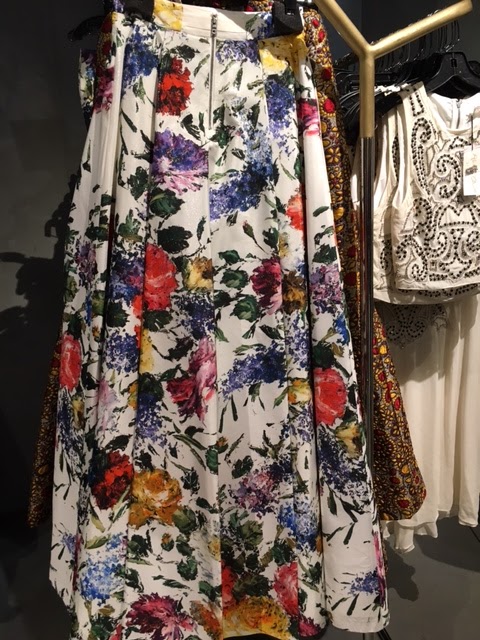 Among the items reduced 70% are exaggerated long skirts and ball gown length dresses. One skirt with an iridescent floral print comes to about $540 from $1800, a more impressionist art print is $180 from almost $600, a fully embroidered jacket is $160 from $550 and a red and white dress with cap sleeves is $430 from $1600. The sale also includes some less expensive items that are not as ornate but those resemble the special gowns that hang in the windows of garment district retailers.