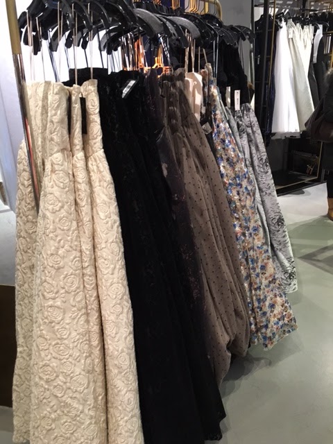 Inside the private event space– at the downtown Century 21 store– is a small collection of some of the designer’s more ornate gowns, dresses and accessories. Prices are reduced 65% to 70% off retail. Much of the selection is from Spring 2015 and some of the best pieces (and most highly discounted) are from the CFDA Fashion is Art collection. Take note that the length of the longer dresses and skirts are highly exaggerated and even at 5’9″ you’re going to need to factor in the price for hemming.
