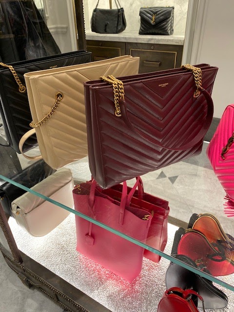 The main floor of handbags is buzzing with activity as customers revel over the great deals. Valentino bags are 40% off. Balenciaga is 30% off. Loewe is 40% off. Saint Laurant is 30% off and Fendi is 30% off. You can click here to see pictures of what styles are included in the markdown. Our favorite finds were this two-tone Loewe Hammock bag $1500 from $2500 and a mini crossbody Saint Laurent camera bag comes to $700 from $995.
