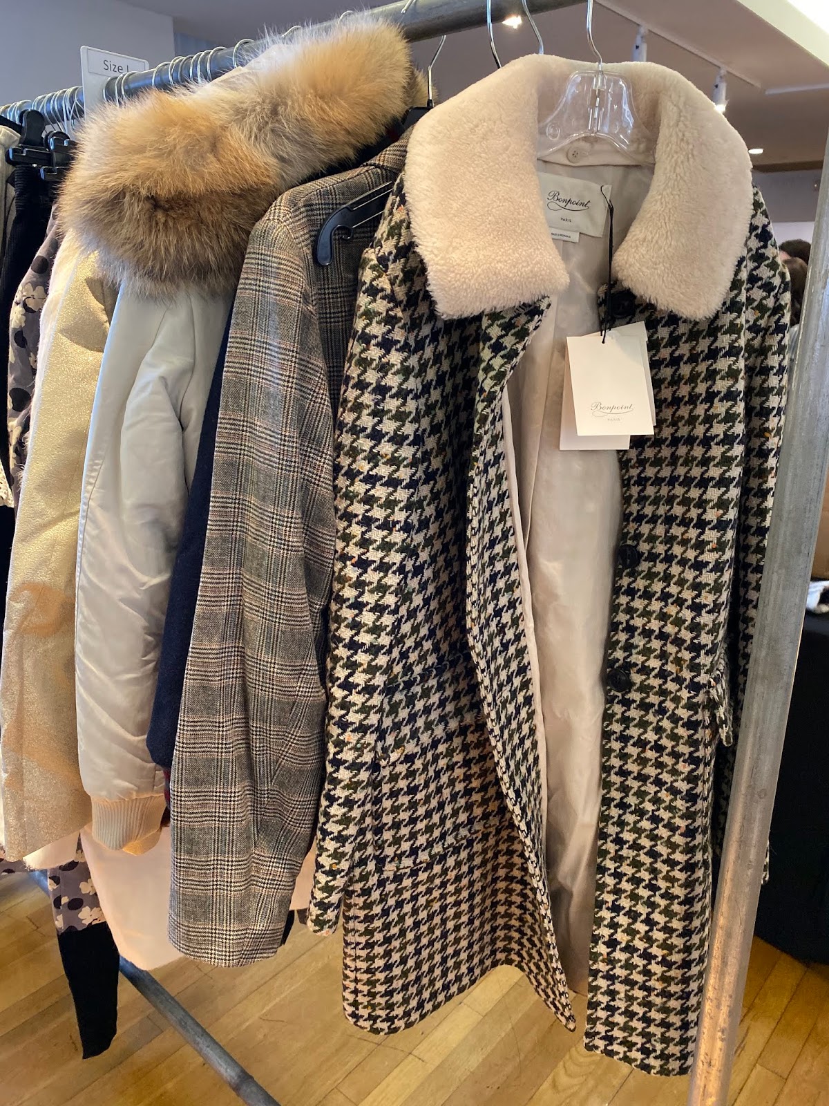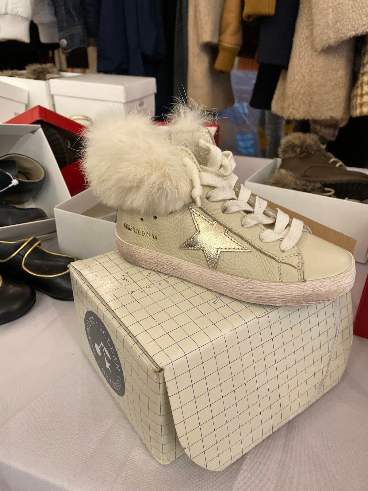 The highlight of the sale was the small selection of Golden Goose x Bonpoint collaboration sneakers, which are reduced 60% off. The retail prices ranged from about $395 to $525. (Pics are over here.) By the time we left many sizes were depleted but there were some in size 34 and smaller. The coat selection is also incredible. Most coats retail for about $1000 and come to $400 after the discount. Baby down buntings are about $260 from $665.