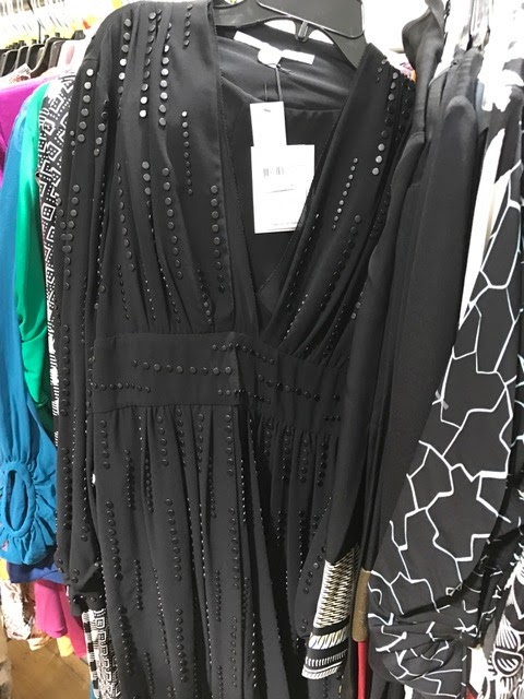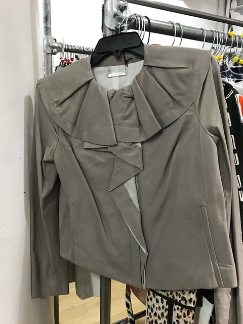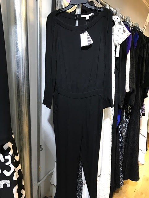 For starters, there is no sample sale rack, which was always a big hit as everything was priced at $50. The end of an era, we suppose. What you will find are plenty of dresses, jumpsuits and tops from this and last season’s collections. All dresses are $100 and wrap dresses are $125. Gowns are $175. Coats, outerwear and leather goods are $250. On the racks we found lots of lace dresses in assorted colors, this silk print wrap dress that hasn’t even hit stores yet and a few of these ivory leather moto jackets in assorted sizes.