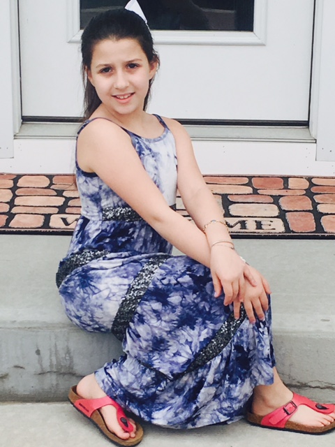 Upon hearing about the new concept we ordered two subscriptions. [For the record, we paid for both boxes. This isn’t an advertisement.] The first box was for an 11-year-old girl and came with a lace dress, a white denim jacket, white jeans, a pink sleeveless gingham blouse, gladiator sandals, a blue tie-dye tee, adorable iron-on patches, sunglasses and leather bracelets. The second box was for a 9-year old girl and was packed with a maxi-sun dress, a coordinating dazzled tee and skirt, a light knit sweater, jean shorts, a tank top, sandals (not shown because they didn’t fit) bracelets and playful iron-on patches. (You can see pictures of the merchandise and more of our in-house models right here.)