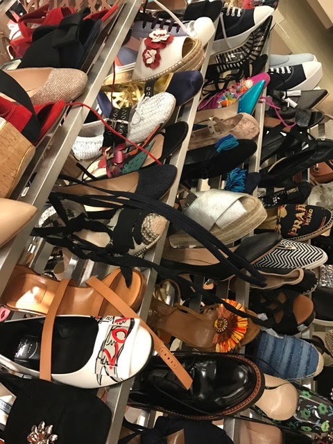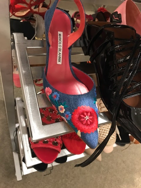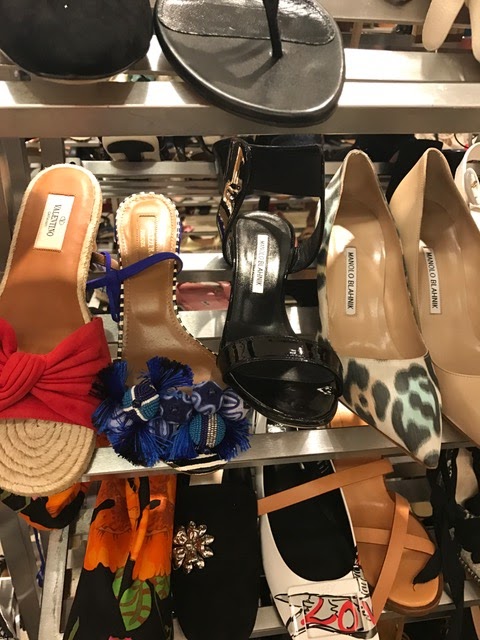 Upstairs, in 9021-shoe, or whatever, the racks are brimming with sale style shoes. Saks is the place to go if you’re looking for Fendi, Prada, Valentino, or Manolo. The available assortment is better than most any other local store. Again, be aware of old style shoes. You could start a fun game trying to name the season for some of the Aquazurra, Miu Miu and Giuseppe Zanotti. (Head this way to see lots of shoe and bag pictures.)