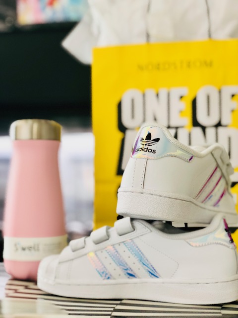 Kid’s Adidas Superstars with iridescent stripes ($40 going to $55)