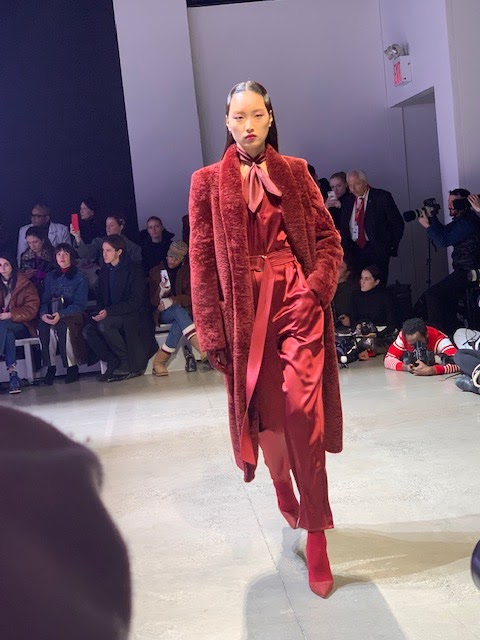 This season, Sally LaPointe’s color stories included, Matcha green, Irish buttery white, Garnet red, orchid, Dijon gold and, of course, blackest black. Each of these shades brings complexity to each outfit and enhances the layering of sequins, shine, fur, and satin. The only pitfall is that to achieve the same look you would need to purchase the entire head-to-toe ensemble. There is no way to look-for-less any of these outfits and that might be the genius of Sally LaPointe.
